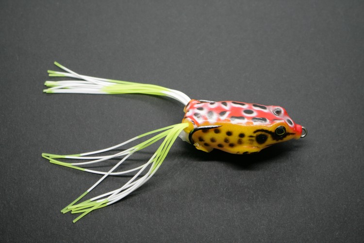 FROG für das Oberflächenangeln. Ausgestattet ist der Gummifrosch mit scharfe Zwillingshaken und sehr auffällige Farben.